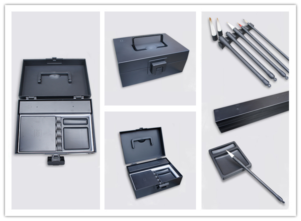 新专利设计的戏墨娃国画教具,全套包含5-7种型号的分离式毛笔、方便儿童使用的新式颜料、笔洗、调色盘、砚台、笔架、镇纸、图章盒等,均经过独立创新设计。轻量化设计,解决了传统绘画工具的差异性和不易保管的缺点,充分考量桌面的可用面积,儿童绘画习惯,通过设计加强儿童对工具的自我掌握与自我管理。同时,戏墨娃的绘画工具适合外出写生携带,紧凑而又功能齐全。