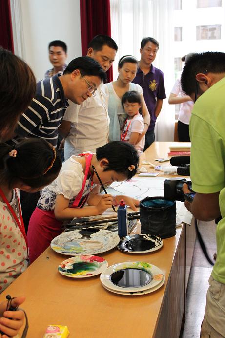 | 孩子聚精会神创作 | 名家创作中 | 与名家交流中 | 交流会活动现场 |
